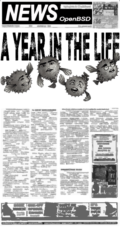 The last 10 years, every 6 month period has (without fail) resulted in an official OpenBSD release making it to the FTP servers. But CDs are also manufactured, which the project sells to continue our development goals. While tests of the release binaries are done by developers around the world, Theo and some developers from Calgary or Edmonton (such as Peter Valchev or Bob Beck) test that the discs are full of (only) correct code. Ty Semaka works for approximately two months to design and draw artwork that will fit the designated theme, and coordinates with his music buddies to write and record a song that also matches the theme. Then the discs and all the artwork gets delivered to the plant, so that they can be pressed in time for an official release date. This release, instead of bemoaning vendors or organizations that try to make our task of writing free software more difficult, we instead celebrate the 10 years that we have been given (so far) to write free software, express our themes in art, and the 5 years that we have made music with a group of talented musicians. OpenBSD developers have been torturing each other for years now with Humppa-style music, so this release our users get a taste of this too. Sometimes at hackathons you will hear the same songs being played on multiple laptops, out of sync. It is under such duress that much of our code gets written. We feel like Pufferix and Bobilix delivering The Three Discs of Freedom to those who want them whenever the need arises, then returning to celebrate the (unlocked) source tree with all the other developers. |